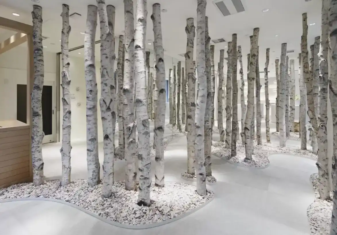 銀座化粧品店のディスプレイ向けに150本の白樺を納品させていただきました。