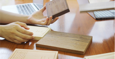 ご希望のデザイン実現に向けて加工サンプルを作成いたします。木材コーディネーターの知識と経験に基づき適切な加工方法でイメージにあったものを手配いたします。